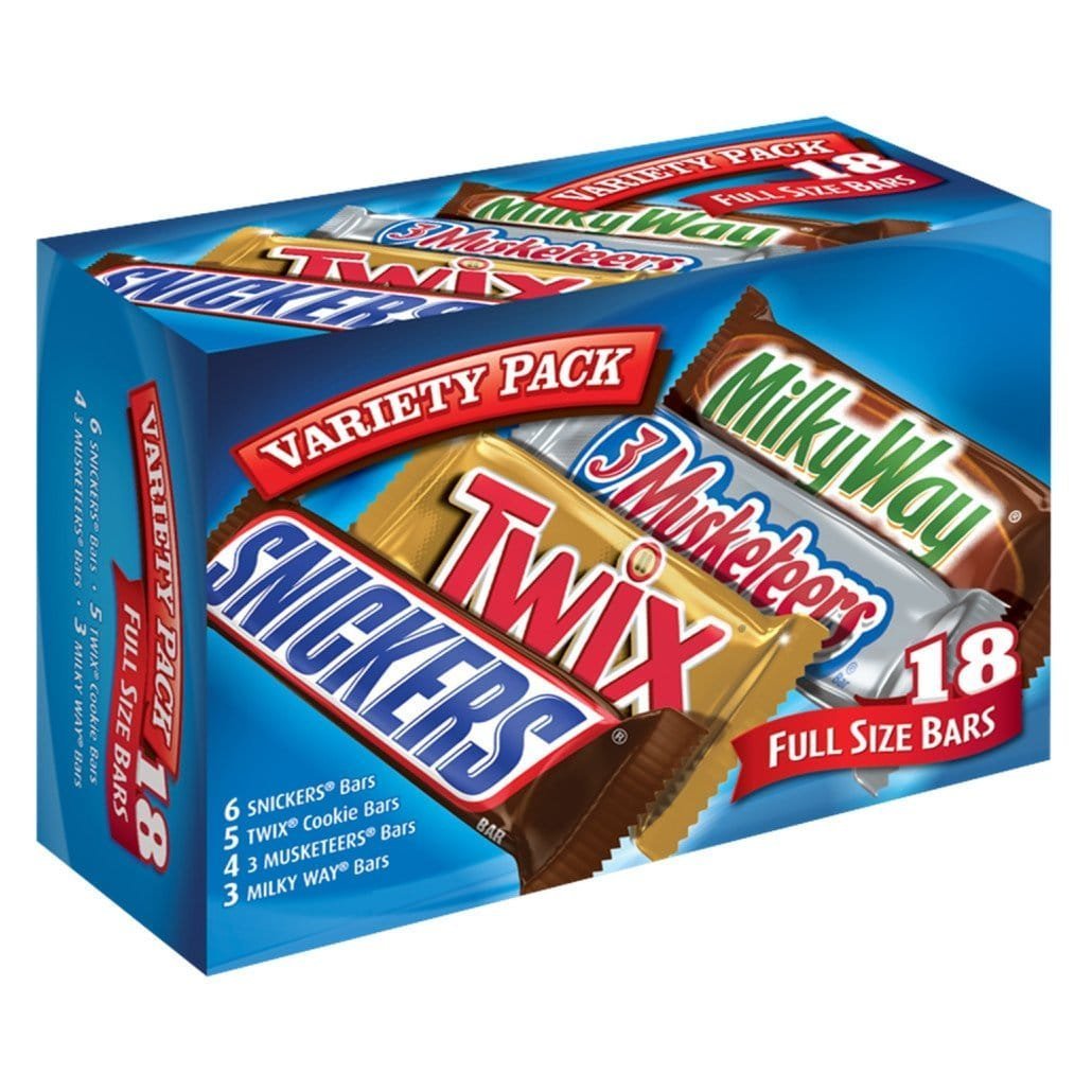 Mars Chocolate, Full Size Candy Bars Assorted Variety,(Milky Way, Twix, Snickers, 3 Musketeers), 33.31 Ounce, 18 Count